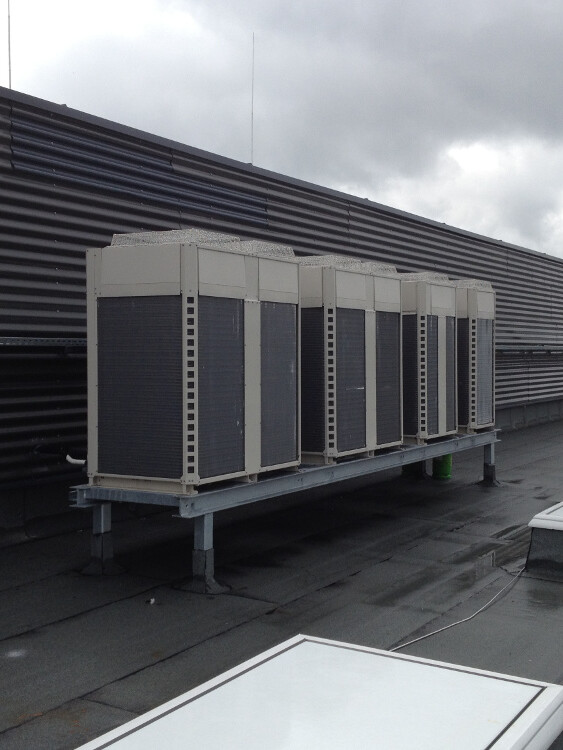 Außerdem sollten ein Serverraum gekühlt und die neu entstehenden Büros klimatisiert werden (Kühlen und Heizen).